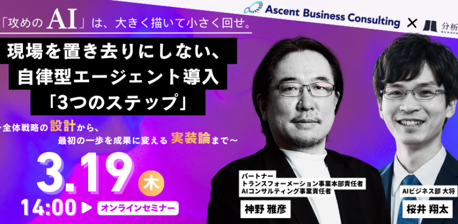 コンサルティング事業を展開している弊社が提供する教育サービス「BasisPoint Academy(ベーシスポイントアカデミー)」では、3/25(水)の18時30分より、生成AI時代を生き抜くための必須スキルを学べる無料セミナーを開催いたします。