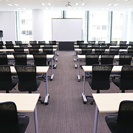 執務スペースの隣は大きな壁面窓が特徴のスペースになっており、社内イベントや勉強会などで使われます。最新のカメラや音響などライブ配信用の設備も揃っており、リモート勤務のメンバーとのやり取りもスムーズです。