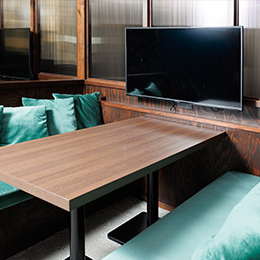 ABCオフィスではフロア内に様々な席を備えています。打ち合わせに最適なモニター付きソファ席や会議室をはじめ、スタンディングデスクや窓際のカウンター席など、気分やそのときの業務スタイルに合わせて利用することができます。集中したいときやWeb会議の際は、仕切り付きの個人ブースがおすすめです。